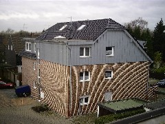 Es muss nicht immer Klinker sein.... Auch im Fassadenbereich gibt es viele verschiedene Gestaltungsmöglichkeiten, abhängig vom ausgewählten Material. Denn auch die Fassade soll nicht nur Schutz bieten, sondern die individuelle Note des Hauses unterstreichen. Dabei können Sie nur den Giebel verkleiden (bei Steildächern beispielsweise) oder auch die gesamte Wand. Lassen Sie sich inspirieren! Daneben verkleiden wir auch Kamine, Schornsteine, Brüstungen und Balkone - eben alles rund um Dach und Fassade... Verschiedene Materialien - verschiedene Möglichkeiten
